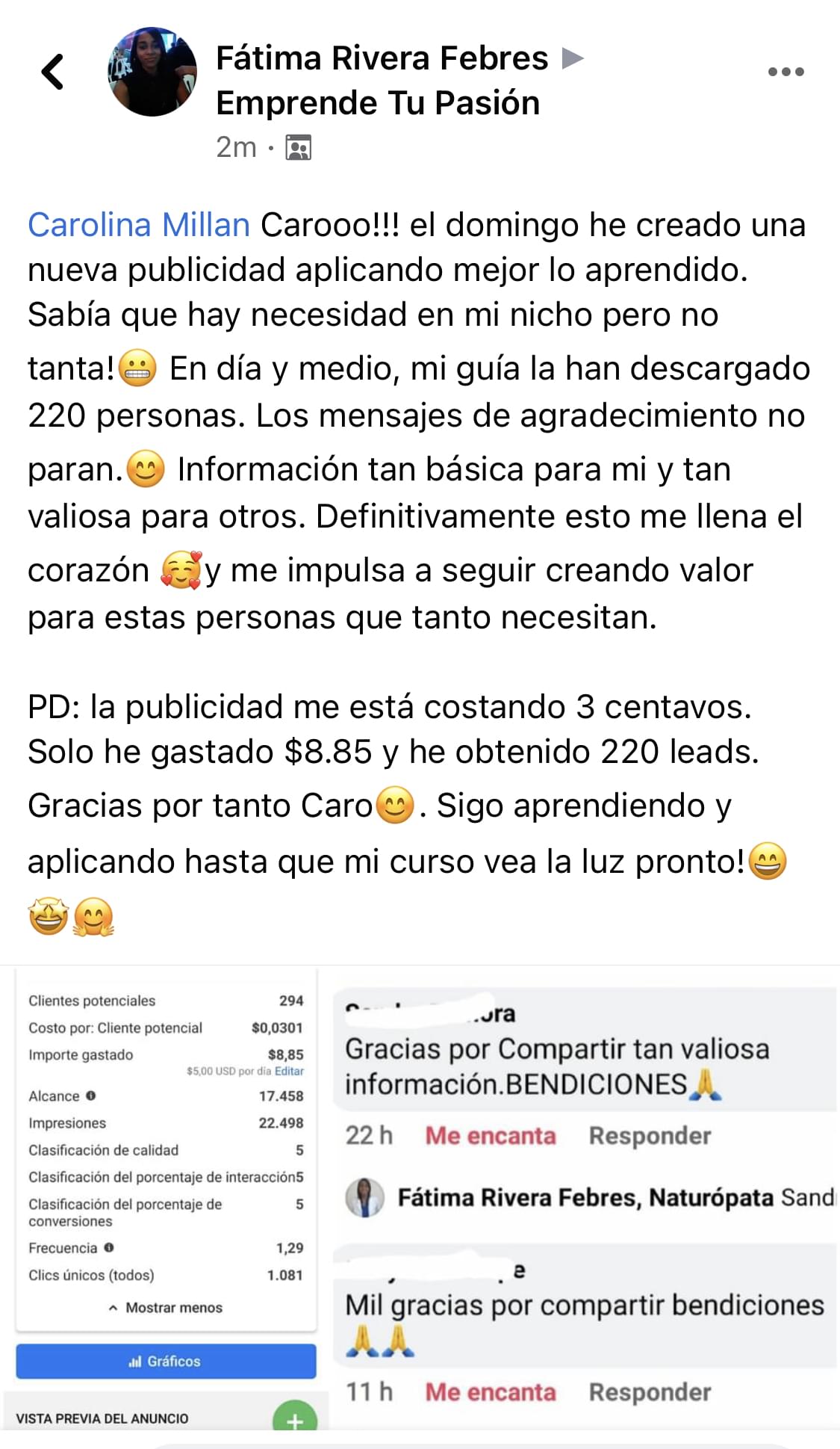 Los resultados indicados anteriormente son mis resultados personales y los de mis alumnos. Por favor, comprende que mis resultados no son típicos, no estoy dando a entender que necesariamente los replicarás o harás algo al respecto. Tengo la ventaja de tener años de experiencia en esta materia. Estoy usando las referencias a resultados solo a modo de ejemplo. Tus resultados variarán y dependerán de muchos factores como tus antecedentes, experiencia o incluso ética. En mi experiencia todo logro o proyecto conlleva un riesgo, así como un esfuerzo y una acción constante. Si no estás dispuesto a aceptar esto puede que esta formación no sea para ti. Gracias por tu interés y comprensión.