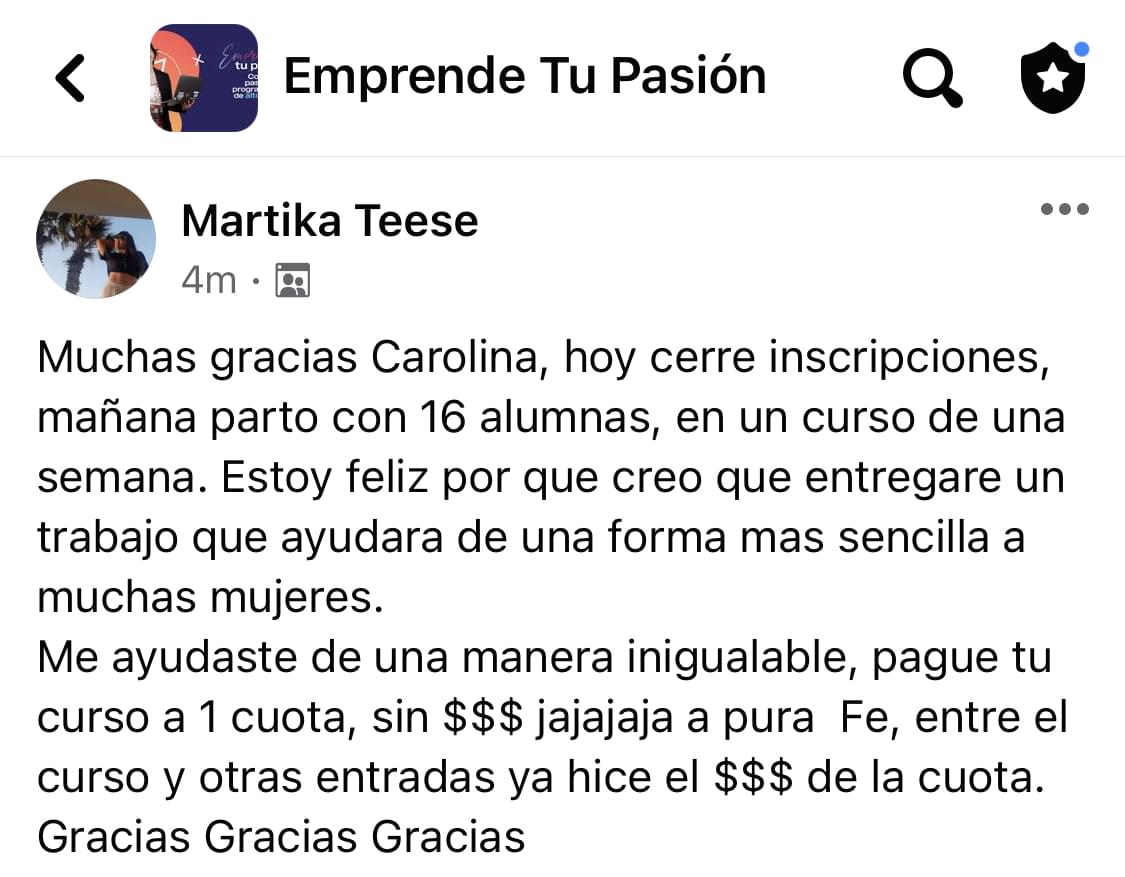 Este programa solo puede adquirirse desde emprendetupasion.com, lanzatucurso.pro o carolinamillan.com . Si lo adquieres de cualquier otro lugar no obtienes los bonos, ni soporte de ningún tipo.